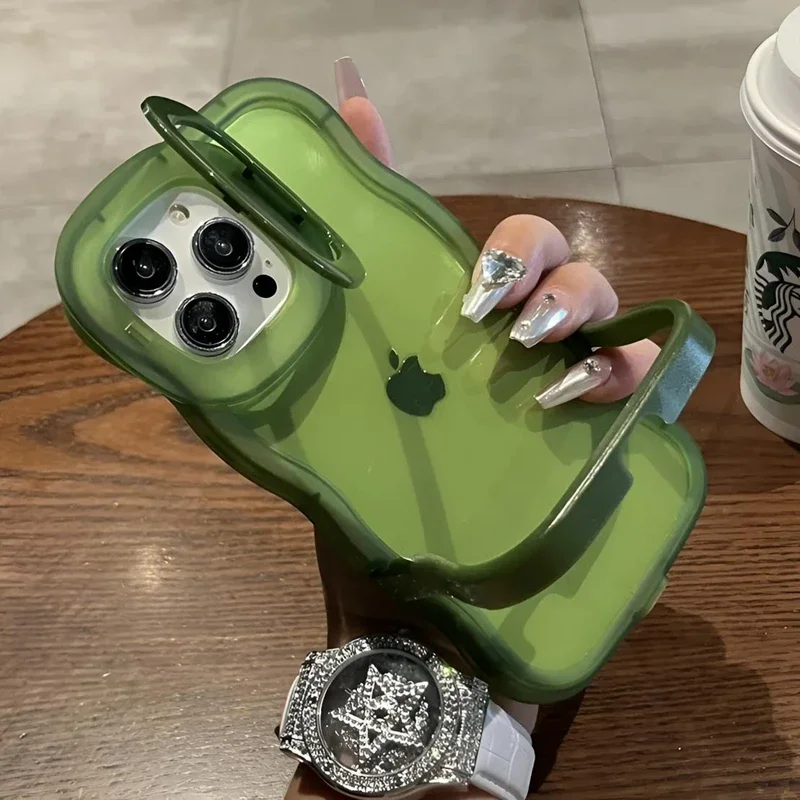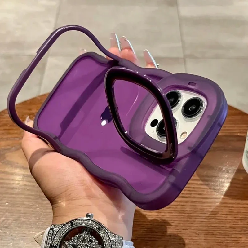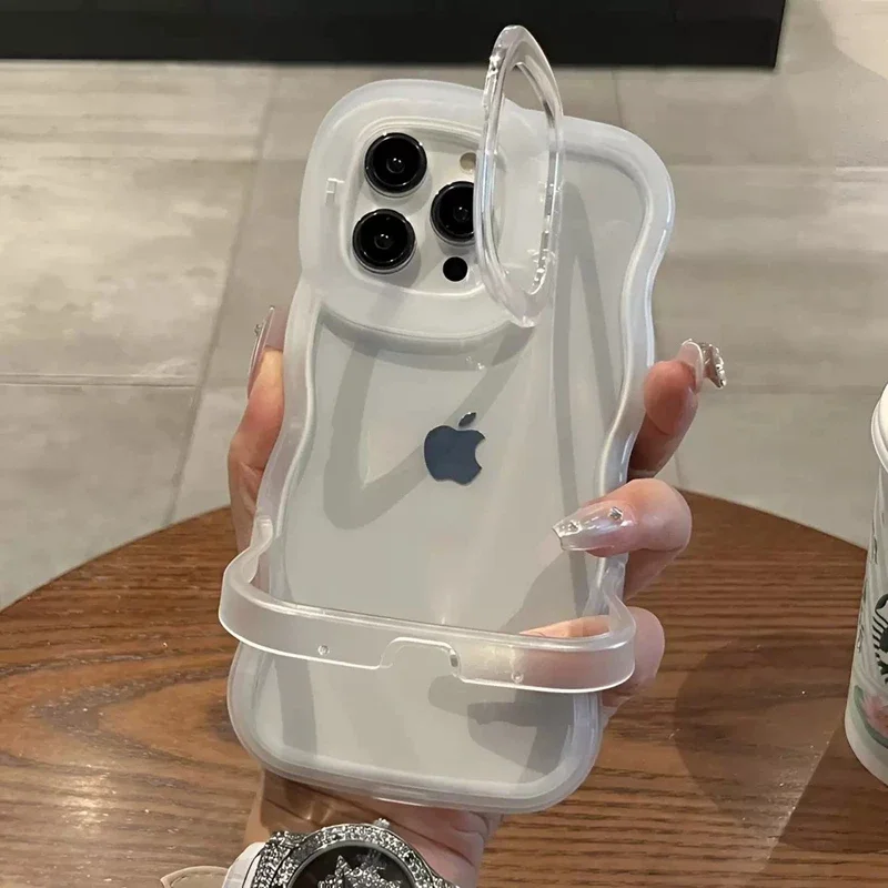2IN1 Folding Stand Wave Clear Phone Case For iPhone