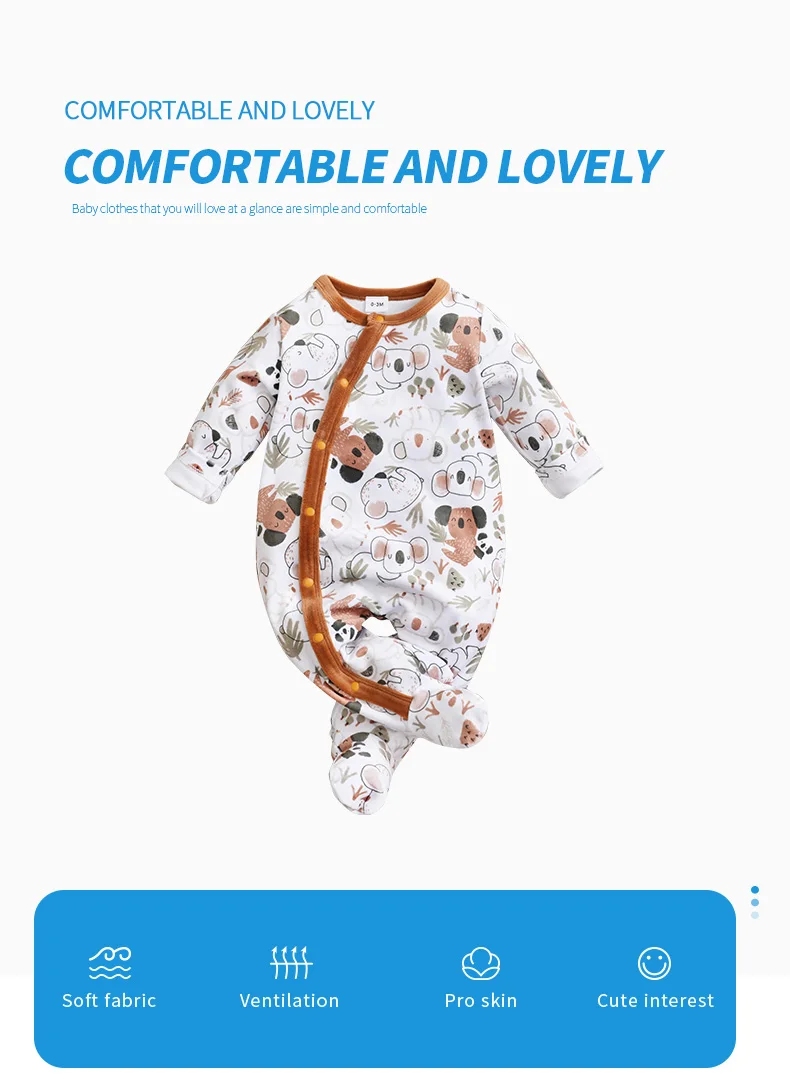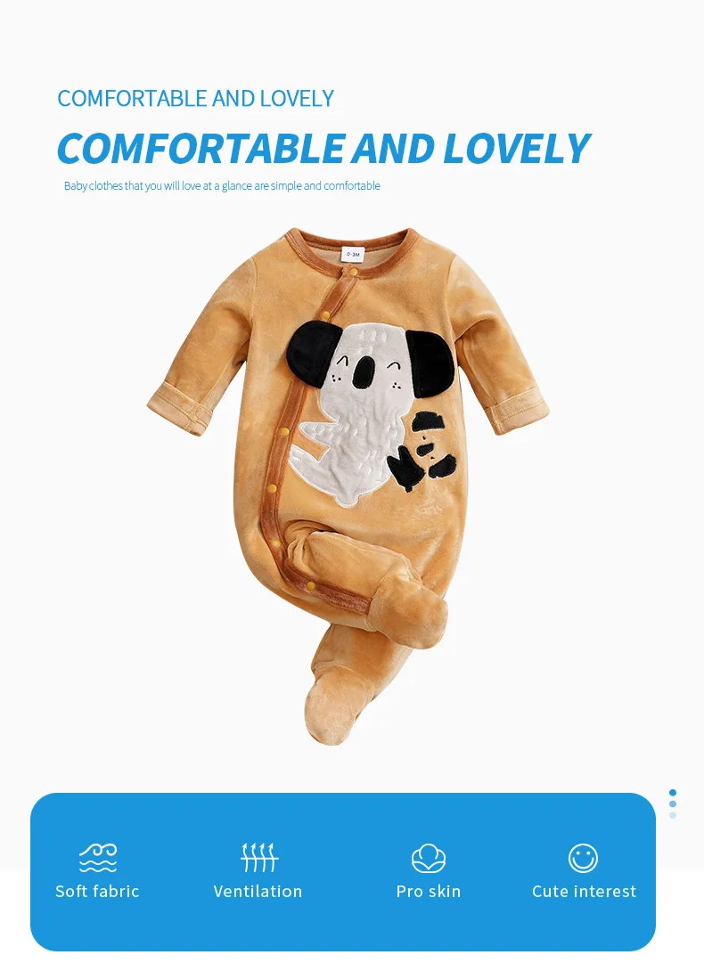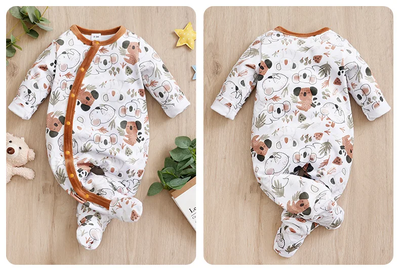 2pcs Newbaby foot jumpsuit Embroidered koala 0-12 months winter comfortable long sleeves,Baby Boy's girls Clothing, As Gift