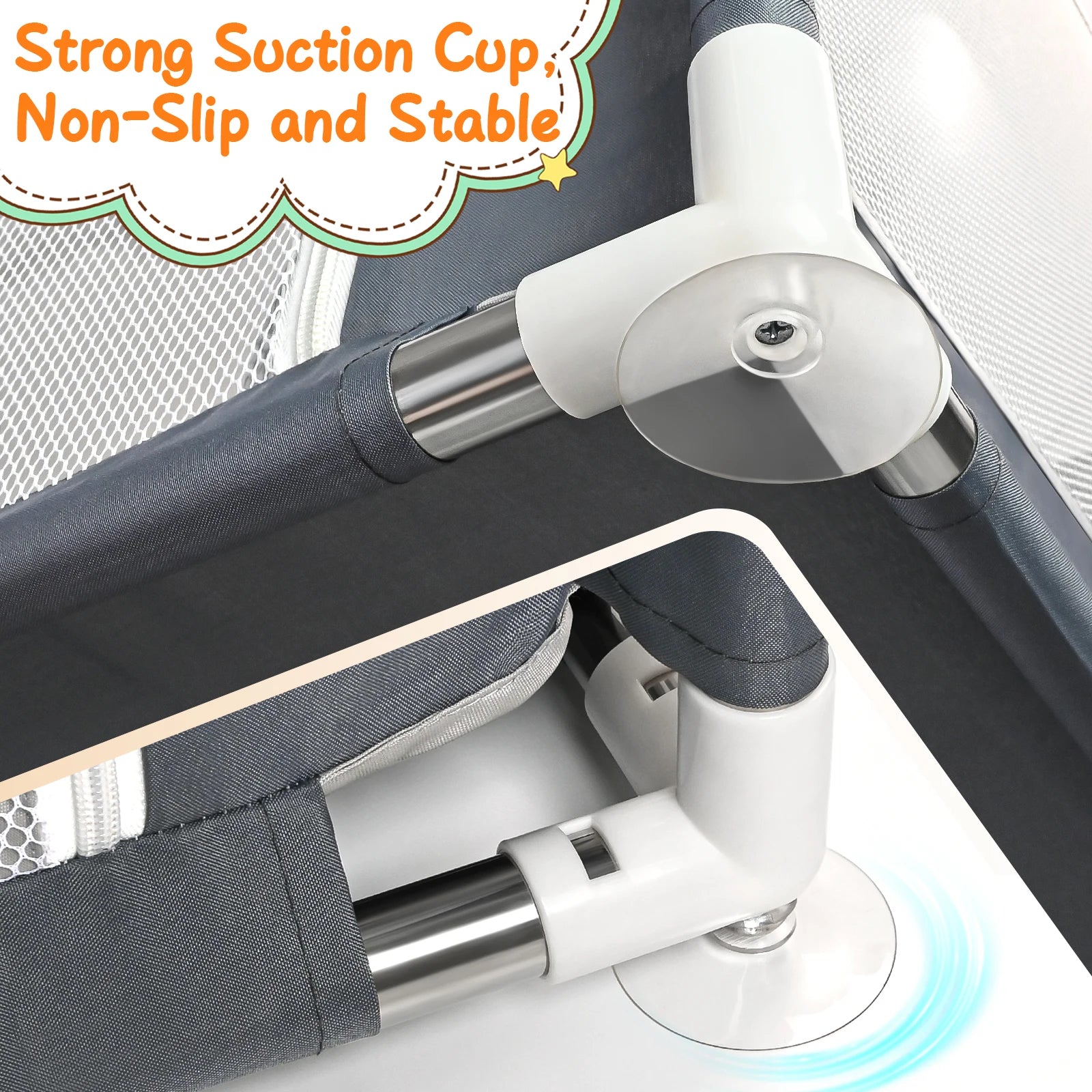 Breathable Mesh Sides and Convenient Access: The sides of our play yard are made from breathable mesh, providing excellent airflow to keep your baby cool and comfortable. The transparent mesh allows you to easily keep an eye on your little one at all times. Additionally, our playpen features a zippered door for easy access. The zip is located on the outside, preventing clever babies from unzipping it without your help. This baby playpen combines safety with convenience.