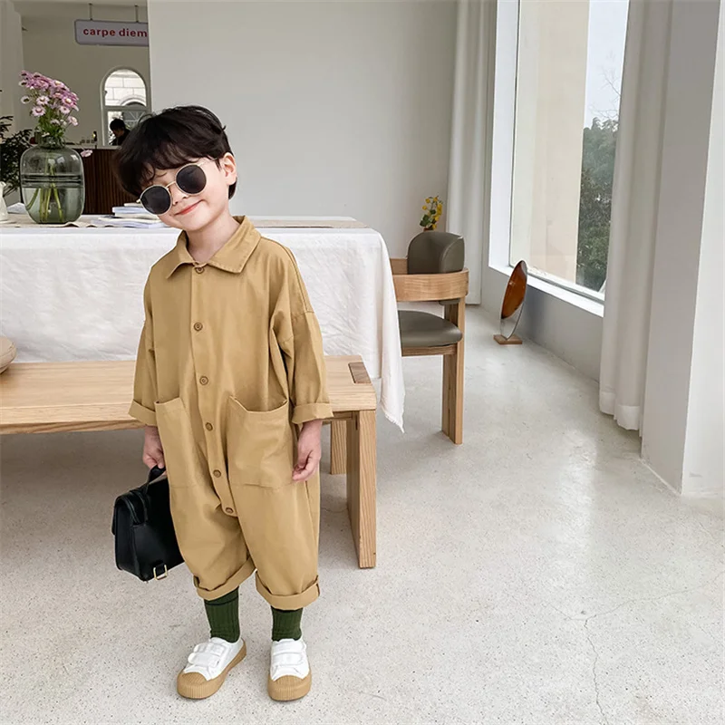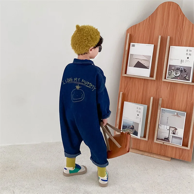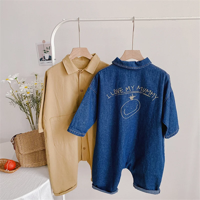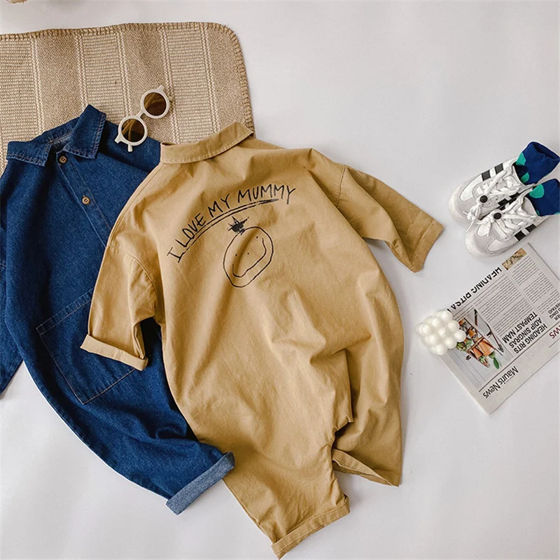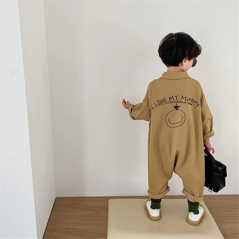Korean style boys girls loose casual bodysuits spring autumn unisex kids cartoon long sleeve one-piece clothes
