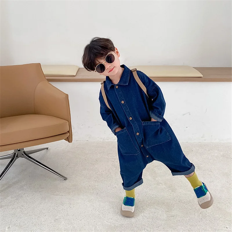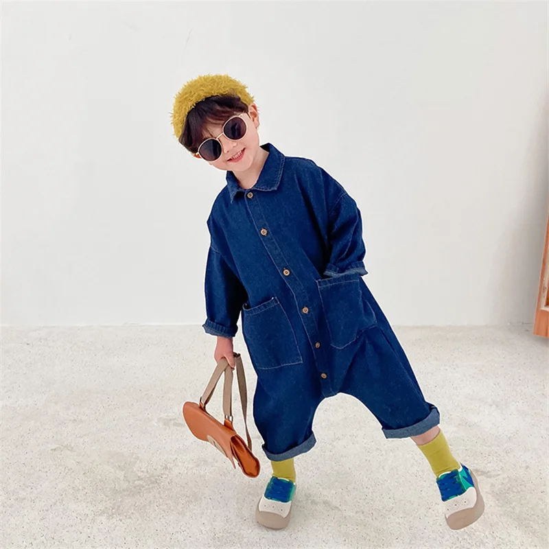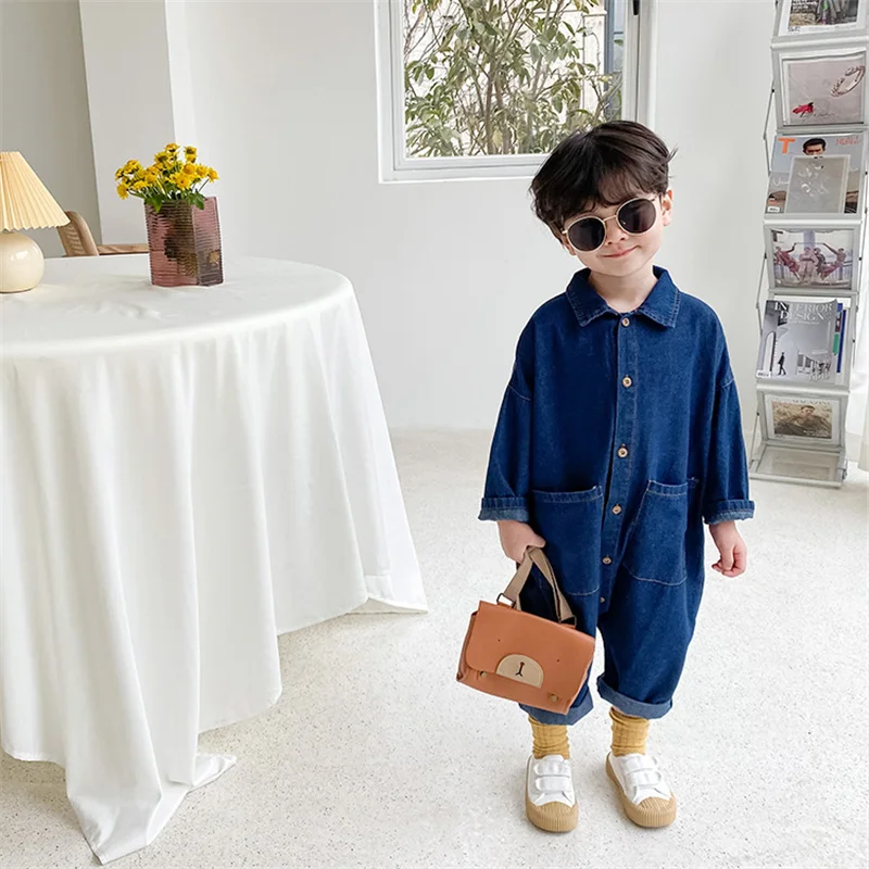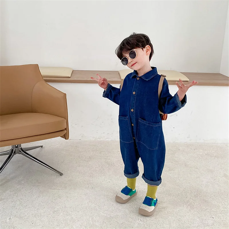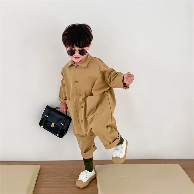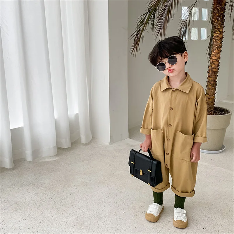 Korean style boys girls loose casual bodysuits spring autumn unisex kids cartoon long sleeve one-piece clothes