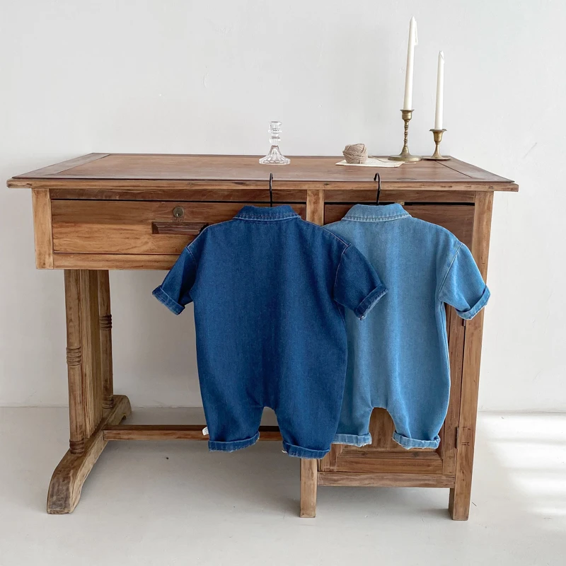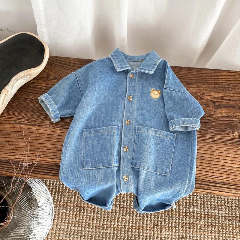 Korean Style Newborn Bodysuit Baby Jumpsuit Boy Girl Autumn Outdoors Bear Prints Denim Romper 0-2yrs
