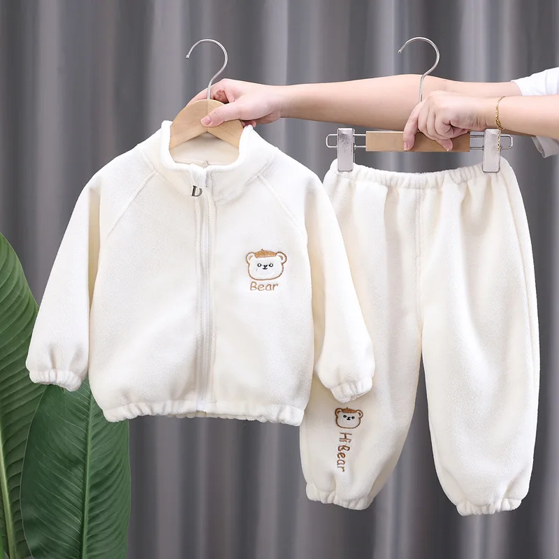 Newborn Baby Kids Tracksuits Long Sleeve Plush Clothing Keep Warm Coat+Pants 2 Piece Sets Boys Girls Suits 1 to 5 Years