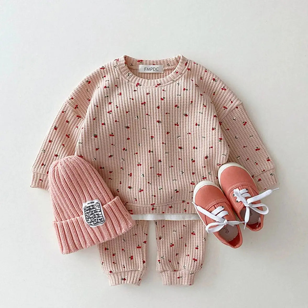 Spring and Autumn Newborn Boys and Girls Round Neck Fruit Cherry Print Long Sleeve Pants Two Piece Infant and Toddler Cute Set