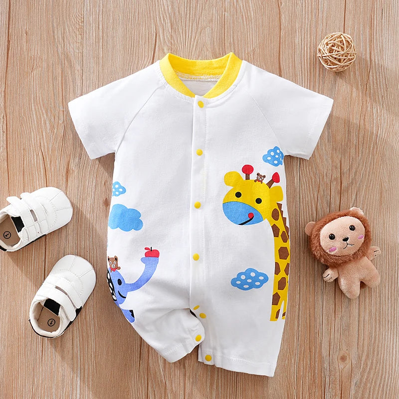 Summer Boys and Girls Cute Cartoon Animal Print All Cotton Casual Comfortable Short Sleeve Baby Clothing Bodysuit